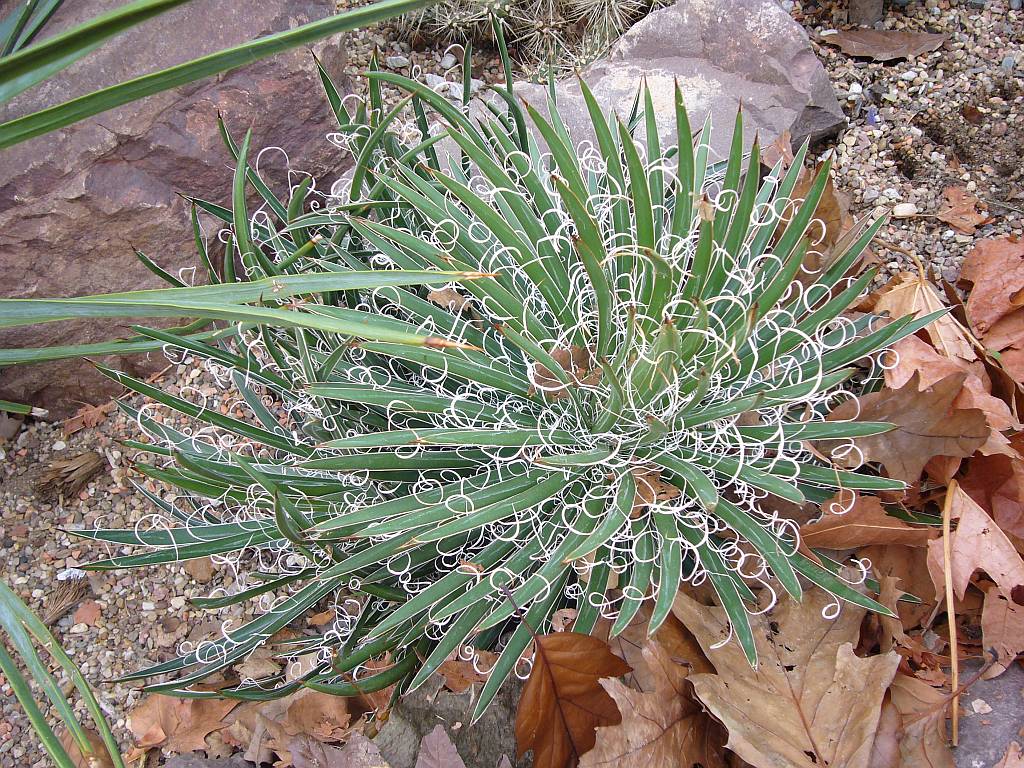 Another unusual one is yucca baccata, thick leaves with little filaments. It should form a trunk but given mine has only grown about 1 leaf this year I think I may be waiting some time for that.