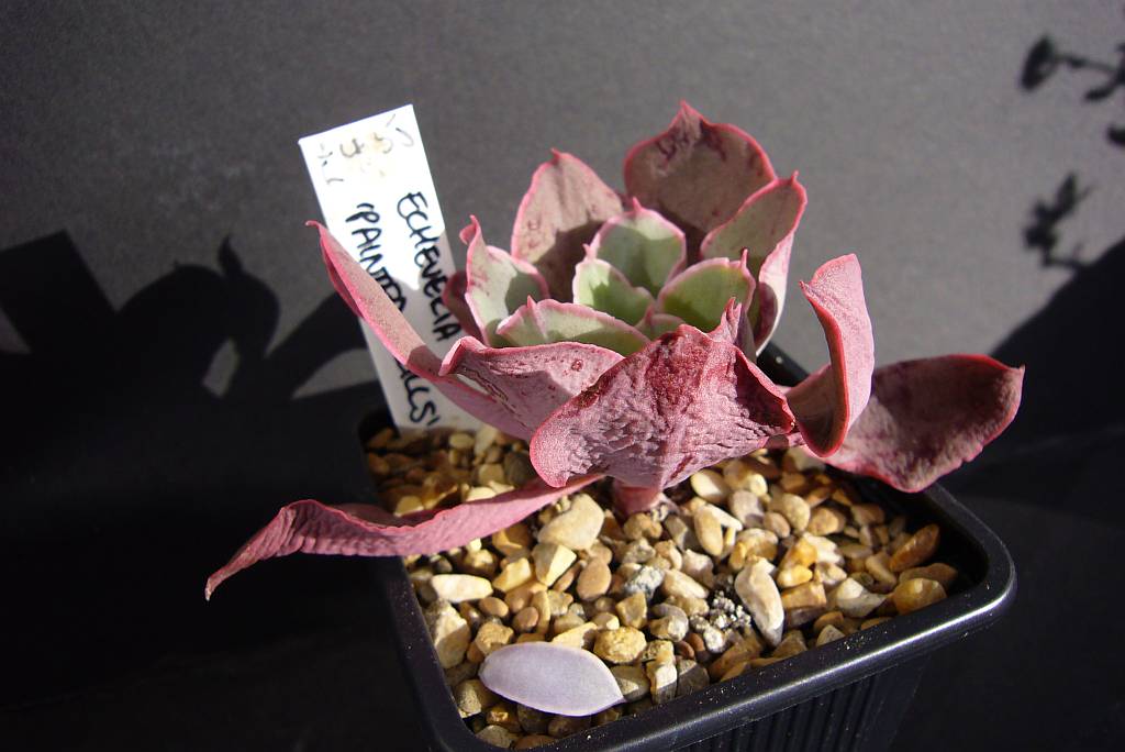 For me though it is not just about keeping plants alive. It is at this point in winter, after a couple of months of no water, that the plants are starting to show the effects; leaves have lost their plumpness and are saggy and often cracked. Older leaves may have died altogether. The echeveria pink frills below is a sad sight compared to normal: