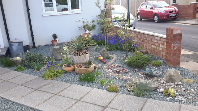 There hasn't been a front garden update in a while. It has all been a learning experience, with far more bulbs and traditional plants than in my usual rockeries. The mild winter means the bulbs are behaving very strangely; they are suppose to be a continous stream of flowers from the early snowdrops and crocus to the late anemones. While the crocus and snowdrops were at their usual Feb and march flowering, come march everything came into flower including the anemones which are not suppose to flower for months.